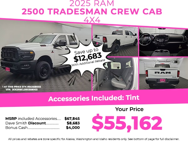 The Ram 2500 features a hands-free Bluetooth phone system. See what's behind you with the back up camera on this 2025 Ram 2500 . This vehicle comes equipped with Android Auto for seamless smartphone integration on the road. The Ram 2500 offers Apple CarPlay for seamless connectivity. The Ram 2500 has auto-adjust speed for safe following. This Ram 2500 has a 6 Cyl, 6.7L high output engine. The vehicle shines with clean polished lines coated with an elegant white finish. A trailer braking system is already installed on this vehicle. When you encounter slick or muddy roads, you can engage the four wheel drive on this Ram 2500 and drive with confidence. Easily set your speed in this Ram 2500 with a state of the art cruise control system. Increase or decrease velocity with the touch of a button. This 3/4 ton pickup has a diesel engine. The fog lights cut through the weather so you can see what's ahead.