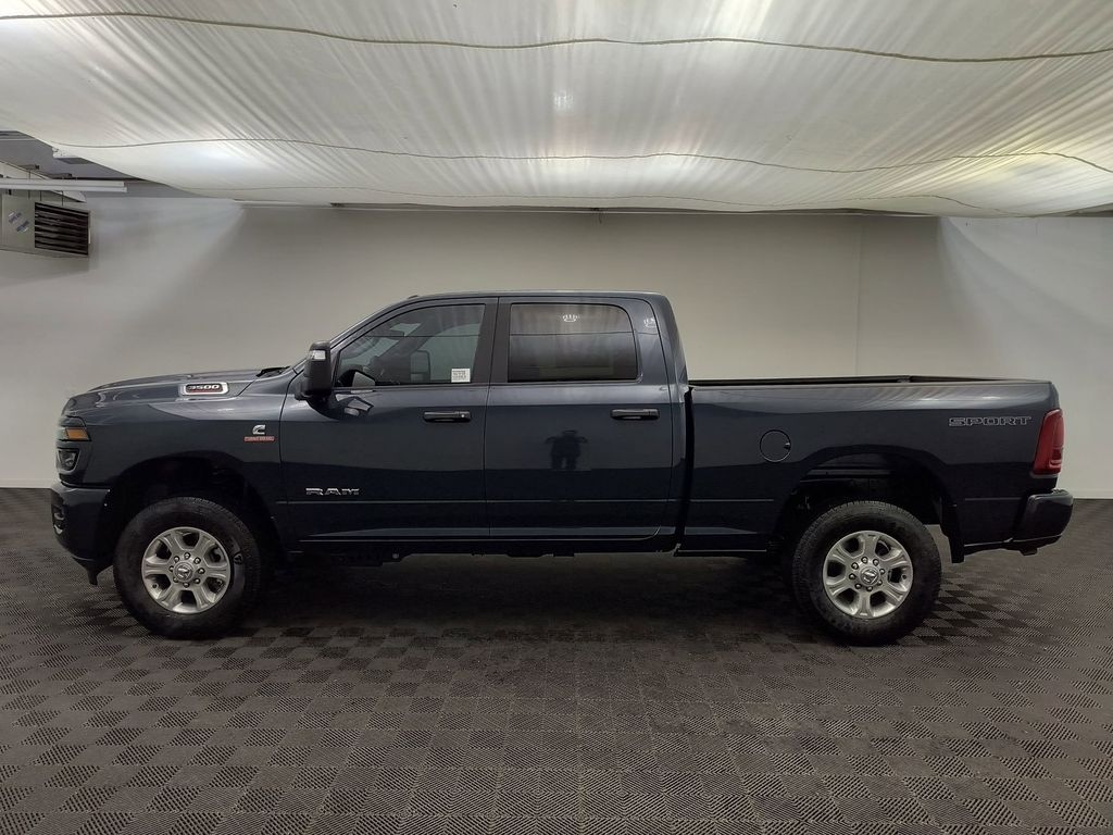 Quick Order Package 24Z Big Horn. Cold Weather Group: Engine Block Heater; MOPAR Winter Front Grille Cover. Sport Appearance Package: Body Color Grille Surround; Black Interior Accents; Sport Decal; Painted Front Bumper; Painted Rear Bumper. Big Horn Level 2 Plus Equipment Group: Google Android Auto; SiriusXM Radio Service; Surround View Camera System; Blind Spot and Cross Path Detection; For Details Visit DriveUconnect.com; Power Adjustable Pedals; For More Info. Call 800-643-2112; Integrated Voice Command with Bluetooth; Emergency Vehicle Alert System (EVAS); 12 Touchscreen Display; Glove Box Lamp; Auto Power-Folding Mirrors; Footwell Courtesy Lamp; Drowsy Driver Detection; Heated Front Seats; Mirror Running Lights; MOPAR Deployable Bed Step; Exterior 115V AC Outlet; Alexa Built-In; Apple CarPlay; Premium Cloth Bucket Seats; Power-Adjustable Convex Aux Mirrors; Active Lane Management System; Forward and Reverse Utility Lights; Locking Lower Glove Box; Remote Start System; 9 Alpine Speakers with Subwoofer; Disassociated Touchscreen Display; Dual Wireless Charging Pad; Trailer Tire Pressure Monitoring System; Dual Glove Boxes; 115-Volt Auxiliary Front Power Outlet; Universal Garage Door Opener; 2nd Row in Floor Storage Bins; Sun Visors with Illuminated Vanity Mirrors; Center Stop Lamp with Cargo View Camera; Rain Sensitive Windshield Wipers; Rear View Auto Dim Mirror; Rear Power Sliding Window; Rear Dome with On/off Switch Lamp; LED Bed Lighting; Connectivity - US/Canada; Traffic Sign Recognition; GPS Navigation; 4G LTE Wi-Fi Hot Spot; Adaptive Steering System; GPS Antenna Input; Exterior Mirrors with Heating Element; SiriusXM with 360L; Global Telematics Box Module; Connected Travel and Traffic Services; Heated Steering Wheel; Foam Bottle Insert (door Trim Panel); Black Exterior Mirrors; Dampened Tailgate; Trailer Reverse Guidance; Big Horn Instrument Panel Badge; Off-Road Information Pages; Selectable Tire Fill Alert; Trailer Tow Pages; 400W Inverter; HD Radio; Uconnect 5 Navigation with 12.0 Display Radio; Power Heated Fold Telescopic Mirrors; Exterior Mirrors with Supplemental Signals; Steering Wheel Mounted Audio Controls; Exterior Mirrors Courtesy Lamps; Air Conditioning ATC with Dual Zone Control; MOPAR Spray in Bedliner; Auto High Beam Headlamp Control; Cluster 7.0 TFT Color Display; Power Adjust Mirrors; Luxury Steering Wheel; Power Telescoping Mirrors. Quick Order Package 2UZ Big Horn. Blind Spot and Cross Path Detection. MOPAR Trailer Camera Wiring with No Camera. Premium Cloth Bucket Seats. Remote Start System. Forged Blue Metallic. **Equipment listed is based on original vehicle build and subject to change. Please confirm the accuracy of the included equipment by calling the dealer prior to purchase.**