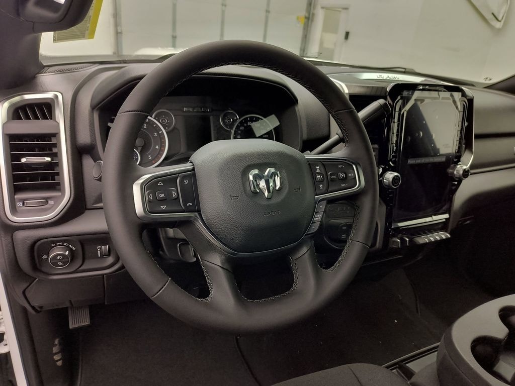 Quick Order Package 24Z Big Horn. Cold Weather Group: Engine Block Heater; MOPAR Winter Front Grille Cover. Big Horn Level 1 Plus Equipment Group: Google Android Auto; SiriusXM Radio Service; For Details Visit DriveUconnect.com; For More Info. Call 800-643-2112; Integrated Voice Command with Bluetooth; Emergency Vehicle Alert System (EVAS); 12 Touchscreen Display; Cloth 40/20/40 Premium Bench Seat; Glove Box Lamp; Auto Power-Folding Mirrors; Footwell Courtesy Lamp; Mirror Running Lights; MOPAR Deployable Bed Step; Alexa Built-In; Apple CarPlay; Power-Adjustable Convex Aux Mirrors; Forward and Reverse Utility Lights; Locking Lower Glove Box; Remote Start System; 9 Alpine Speakers with Subwoofer; Disassociated Touchscreen Display; Dual Glove Boxes; 2nd Row in Floor Storage Bins; Rear View Auto Dim Mirror; Rear Dome with On/off Switch Lamp; LED Bed Lighting; Connectivity - US/Canada; GPS Navigation; 4G LTE Wi-Fi Hot Spot; GPS Antenna Input; Exterior Mirrors with Heating Element; SiriusXM with 360L; Global Telematics Box Module; Connected Travel and Traffic Services; Foam Bottle Insert (door Trim Panel); Black Exterior Mirrors; Big Horn Instrument Panel Badge; Off-Road Information Pages; Selectable Tire Fill Alert; Trailer Tow Pages; HD Radio; Uconnect 5 Navigation with 12.0 Display Radio; Power Heated Fold Telescopic Mirrors; Exterior Mirrors with Supplemental Signals; Steering Wheel Mounted Audio Controls; Exterior Mirrors Courtesy Lamps; Air Conditioning ATC with Dual Zone Control; MOPAR Spray in Bedliner; Power Adjust Mirrors; Luxury Steering Wheel; Power Telescoping Mirrors. Dual Rear Wheels: Clearance Lamps; LT235/80R17E BSW All Season Tires; 17 Steel Spare Wheel; Box and Rear Fender Clearance Lamps; Center Hub; 6000# Front Axle with Hub Extension; 17 X 6.0 Polished Aluminum Wheels; Nexen Brand Tires; 14. 000 Lb GVWR; Rear Wheelhouse Liners. Quick Order Package 2UZ Big Horn. Cloth 40/20/40 Premium Bench Seat. 50 Gallon Fuel Tank. Remote Start System. Rear Wheelhouse Liners. Clearance Lamps. Power 2-Way Driver Lumbar Adjust. **Equipment listed is based on original vehicle build and subject to change. Please confirm the accuracy of the included equipment by calling the dealer prior to purchase.**