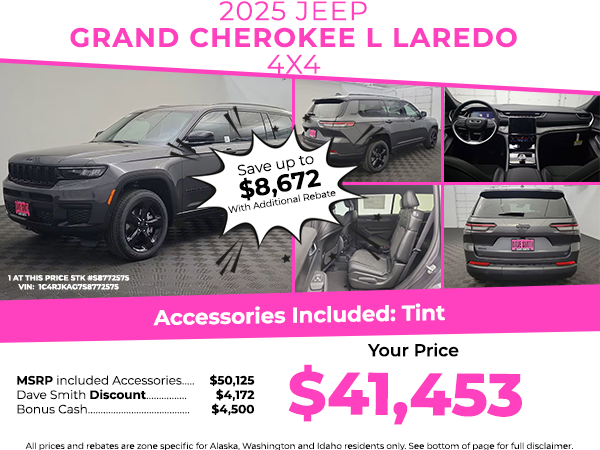 This Jeep Grand Cherokee L features a hands-free Bluetooth phone system. Protect this model from unwanted accidents with a cutting edge backup camera system. This Jeep Grand Cherokee L keeps you comfortable with Auto Climate. This unit's Forward Collision Warning system alerts the driver to potential front-end collisions, enhancing safety. Start the Jeep Grand Cherokee L from inside with remote start. This 2025 Jeep Grand Cherokee L comes equipped with Android Auto for seamless smartphone integration on the road. This model has auto-adjust speed for safe following. The leather seats in this 2025 Jeep Grand Cherokee L are a must for buyers looking for comfort, durability, and style. This model offers Apple CarPlay for seamless connectivity. It is pure luxury with a heated steering wheel. When you encounter slick or muddy roads, you can engage the four wheel drive on this 2025 Jeep Grand Cherokee L and drive with confidence.