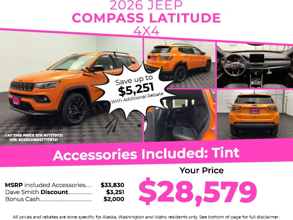 Start this mid-size suv from inside with remote start. Protect the Jeep Compass from unwanted accidents with a cutting edge backup camera system. Keep your hands warm all winter with a heated steering wheel in this Jeep Compass . with XM/Sirus Satellite Radio you are no longer restricted by poor quality local radio stations while driving this 2026 Jeep Compass . Anywhere on the planet, you will have hundreds of digital stations to choose from. This mid-size suv keeps you comfortable with Auto Climate. This model features a hands-free Bluetooth phone system. This 2026 Jeep Compass 's Forward Collision Warning feature alerts drivers to potential front-end collisions. This unit has an attractive deep orange exterior. This Jeep Compass has a 4 Cyl, 2.0L high output engine. Load groceries and much more with ease into the vehicle thanks to the power liftgate. Maintaining a stable interior temperature in the Jeep Compass is easy with the climate control system.