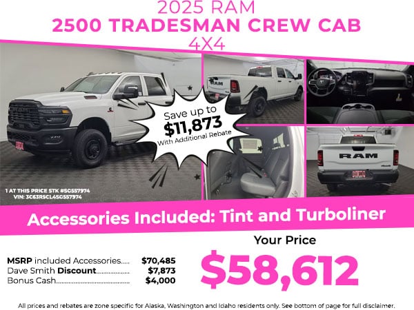 This vehicle keeps you comfortable with Auto Climate. Apple CarPlay: Seamless smartphone integration for this model - stay connected and entertained on the go! The rear parking assist technology on the Ram 2500 will put you at ease when reversing. The system alerts you as you get closer to an obstruction. with XM/Sirus Satellite Radio you are no longer restricted by poor quality local radio stations while driving this vehicle. Anywhere on the planet, you will have hundreds of digital stations to choose from. Bluetooth technology is built into this 3/4 ton pickup, keeping your hands on the steering wheel and your focus on the road. This Ram 2500 offers Android Auto for seamless smartphone integration. See what's behind you with the back up camera on this unit. You'll never again be lost in a crowded city or a country region with the navigation system on this 2025 Ram 2500 .
