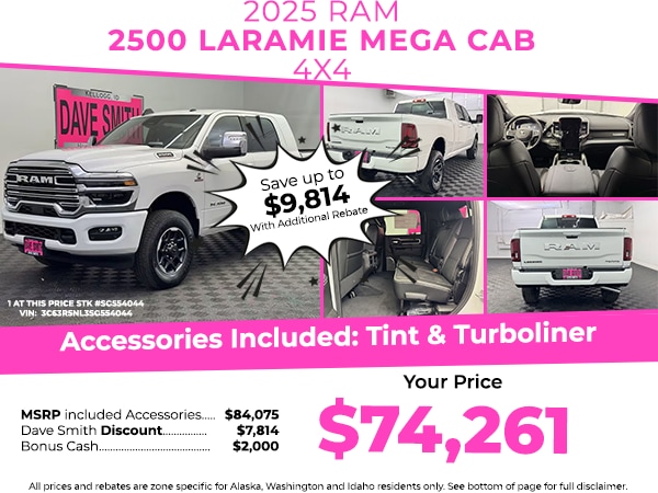 Cold Weather Group: Engine Block Heater; MOPAR Winter Front Grille Cover. Laramie Level 2 Equipment Group: Google Android Auto; SiriusXM Radio Service; Rain Sensitive Windshield Wipers; Power Adjustable Pedals with Memory; Integrated Voice Command with Bluetooth; Connectivity - US/Canada; Emergency Vehicle Alert System (EVAS); Auto Power-Folding Mirrors; GPS Navigation; 4G LTE Wi-Fi Hot Spot; GPS Antenna Input; Exterior Mirrors with Heating Element; Auto Dim Exterior Mirror; SiriusXM with 360L; Anti-Spin Differential Rear Axle; Global Telematics Box Module; Connected Travel and Traffic Services; Mirror Running Lights; Foam Bottle Insert (door Trim Panel); Alexa Built-In; Apple CarPlay; Power Adjustable Convex Aux Mirrors; Off-Road Information Pages; Forward and Reverse Utility Lights; Selectable Tire Fill Alert; Trailer Tow Pages; Disassociated Touchscreen Display; Leather Trimmed Bucket Seats; HD Radio; 14.4 Touchscreen Display; Power Heated Fold Telescope Mirrors W/memory; Exterior Mirrors with Supplemental Signals; Exterior Mirrors Courtesy Lamps; Uconnect 5 Nav with 14.4 Display; Remote Tailgate Release; 17 Speaker Harman/kardon Premium Sound; Auto High Beam Headlamp Control; Chrome Exterior Mirrors; Exterior Mirrors with Memory; Power Adjust Mirrors; Power Telescoping Mirrors; Auto Dim Exterior Passenger Mirror; Auto Adjust in Reverse Exterior Mirrors. Quick Order Package 24H Laramie. Leather Trimmed Bucket Seats. **Equipment listed is based on original vehicle build and subject to change. Please confirm the accuracy of the included equipment by calling the dealer prior to purchase.**
