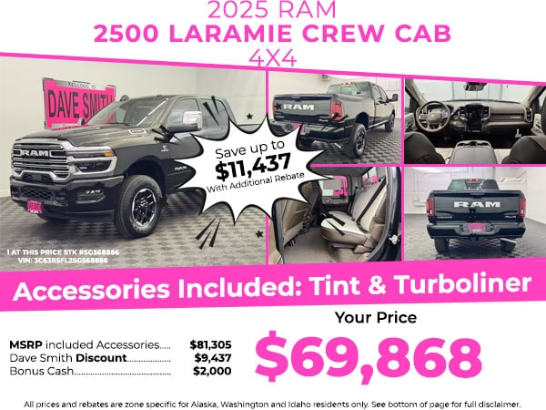 This 3/4 ton pickup features a hands-free Bluetooth phone system. Apple CarPlay: Seamless smartphone integration for this unit - stay connected and entertained on the go! You'll never again be lost in a crowded city or a country region with the navigation system on this 2025 Ram 2500 . This 2025 Ram 2500 has auto-adjust speed for safe following. This model offers Android Auto for seamless smartphone integration. The Ram 2500's Forward Collision Warning system alerts the driver to potential front-end collisions, enhancing safety. The leather seats in this 3/4 ton pickup are a must for buyers looking for comfort, durability, and style. See what's behind you with the back up camera on the vehicle. Keep your hands warm all winter with a heated steering wheel in the Ram 2500 . This 2025 Ram 2500 offers Automatic Climate Control for personalized comfort. Set the temperature exactly where you are most comfortable in the vehicle. The fan speed and temperature will automatically adjust to maintain your preferred zone climate.