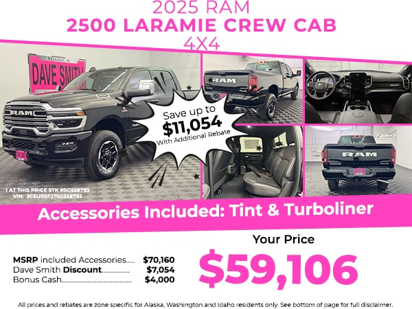 Laramie Level 2 Equipment Group: Google Android Auto; SiriusXM Radio Service; Rain Sensitive Windshield Wipers; Power Adjustable Pedals with Memory; Integrated Voice Command with Bluetooth; Connectivity - US/Canada; Emergency Vehicle Alert System (EVAS); Auto Power-Folding Mirrors; GPS Navigation; 4G LTE Wi-Fi Hot Spot; GPS Antenna Input; Exterior Mirrors with Heating Element; Auto Dim Exterior Mirror; SiriusXM with 360L; Anti-Spin Differential Rear Axle; Global Telematics Box Module; Connected Travel and Traffic Services; Mirror Running Lights; Foam Bottle Insert (door Trim Panel); Alexa Built-In; Apple CarPlay; Power Adjustable Convex Aux Mirrors; Off-Road Info Pages; Forward and Reverse Utility Lights; Selectable Tire Fill Alert; Trailer Tow Pages; Disassociated Touchscreen Display; Leather Trimmed Bucket Seats; HD Radio; 14.4 Touchscreen Display; Power Heated Fold Telescopic Mirrors with Memory; Exterior Mirrors with Supplemental Signals; Exterior Mirrors Courtesy Lamps; Uconnect 5 Nav with 14.4 Display; Remote Tailgate Release; 17 Speaker Harman/kardon Premium Sound; Auto High Beam Headlamp Control; Chrome Exterior Mirrors; Exterior Mirrors with Memory; Power Adjust Mirrors; 2nd Row in Floor Storage Bins; Power Telescoping Mirrors; Auto Dim Exterior Passenger Mirror; Auto Adjust in Reverse Exterior Mirrors. Quick Order Package 2UH Laramie. Leather Trimmed Bucket Seats. Diamond Black Crystal PC. **Equipment listed is based on original vehicle build and subject to change. Please confirm the accuracy of the included equipment by calling the dealer prior to purchase.**