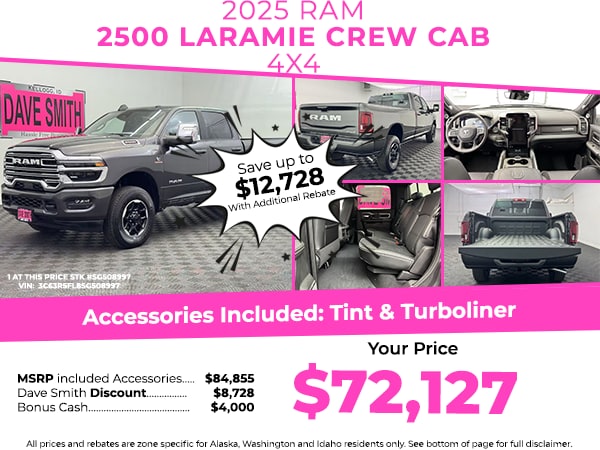 Keep your hands warm all winter with a heated steering wheel in it . The leather seats in this 2025 Ram 2500 are a must for buyers looking for comfort, durability, and style. It comes equipped with Android Auto for seamless smartphone integration on the road. This 3/4 ton pickup's Forward Collision Warning system alerts the driver to potential front-end collisions, enhancing safety. Protect it from unwanted accidents with a cutting edge backup camera system. This model offers Apple CarPlay for seamless connectivity. Bluetooth technology is built into this model, keeping your hands on the steering wheel and your focus on the road. You'll never again be lost in a crowded city or a country region with the navigation system on this Ram 2500. This 3/4 ton pickup has automated speed control that adjusts to maintain a safe following distance, enhancing highway driving convenience. Set the temperature exactly where you are most comfortable in this unit. The fan speed and temperature will automatically adjust to maintain your preferred zone climate.
