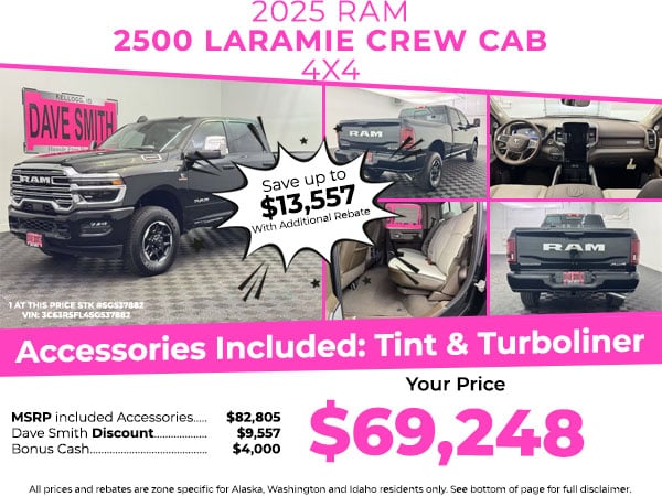 The installed navigation system will keep you on the right path. with XM/Sirus Satellite Radio you are no longer restricted by poor quality local radio stations while driving it. Anywhere on the planet, you will have hundreds of digital stations to choose from. An off-road package is equipped on the Ram 2500. This model has a premium sound system installed. This 2025 Ram 2500 comes equipped with Android Auto for seamless smartphone integration on the road. This vehicle features a hands-free Bluetooth phone system. Apple CarPlay: Seamless smartphone integration for this model - stay connected and entertained on the go! This vehicle has auto-adjust speed for safe following. Protect it from unwanted accidents with a cutting edge backup camera system. The leather seats in this unit are a must for buyers looking for comfort, durability, and style. This unit's Forward Collision Warning feature alerts drivers to potential front-end collisions. This 2025 Ram 2500 is pure luxury with a heated steering wheel.