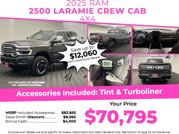 Cold Weather Group: Engine Block Heater; MOPAR Winter Front Grille Cover. Laramie Level 2 Equipment Group: Google Android Auto; SiriusXM Radio Service; Rain Sensitive Windshield Wipers; Power Adjustable Pedals with Memory; Integrated Voice Command with Bluetooth; Connectivity - US/Canada; Emergency Vehicle Alert System (EVAS); Auto Power-Folding Mirrors; GPS Navigation; 4G LTE Wi-Fi Hot Spot; GPS Antenna Input; Exterior Mirrors with Heating Element; Auto Dim Exterior Mirror; SiriusXM with 360L; Anti-Spin Differential Rear Axle; Global Telematics Box Module; Connected Travel and Traffic Services; Mirror Running Lights; Foam Bottle Insert (door Trim Panel); Alexa Built-In; Apple CarPlay; Power Adjustable Convex Aux Mirrors; Off-Road Info Pages; Forward and Reverse Utility Lights; Selectable Tire Fill Alert; Trailer Tow Pages; Disassociated Touchscreen Display; Leather Trimmed Bucket Seats; HD Radio; 14.4 Touchscreen Display; Power Heated Fold Telescopic Mirrors with Memory; Exterior Mirrors with Supplemental Signals; Exterior Mirrors Courtesy Lamps; Uconnect 5 Nav with 14.4 Display; Remote Tailgate Release; 17 Speaker Harman/kardon Premium Sound; Auto High Beam Headlamp Control; Chrome Exterior Mirrors; Exterior Mirrors with Memory; Power Adjust Mirrors; 2nd Row in Floor Storage Bins; Power Telescoping Mirrors; Auto Dim Exterior Passenger Mirror; Auto Adjust in Reverse Exterior Mirrors. Quick Order Package 24H Laramie. Leather Trimmed Bucket Seats. Granite Crystal Met CC. **Equipment listed is based on original vehicle build and subject to change. Please confirm the accuracy of the included equipment by calling the dealer prior to purchase.**