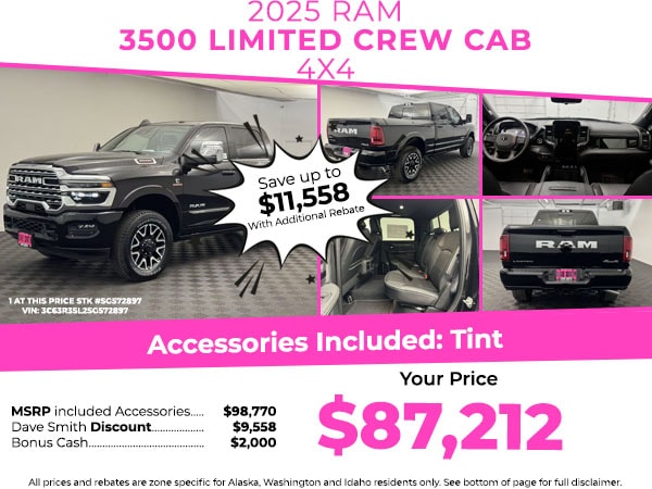 Cold Weather Group: Engine Block Heater; MOPAR Winter Front Grille Cover. Limited Level 1 Equipment Group: Active Lane Management System; MOPAR Spray in Bedliner; Center Stop Lamp with Cargo View Camera; Surround View Camera System; Drowsy Driver Detection; LED Bed Lighting; Power Deployable Running Boards; Traffic Sign Recognition; Trailer Tire Pressure Monitoring System; Trailer Reverse Guidance; Digital Rearview Mirror; Adaptive Steering System. Quick Order Package 24M Limited. Power Sunroof. Diamond Black Crystal PC. **Equipment listed is based on original vehicle build and subject to change. Please confirm the accuracy of the included equipment by calling the dealer prior to purchase.**