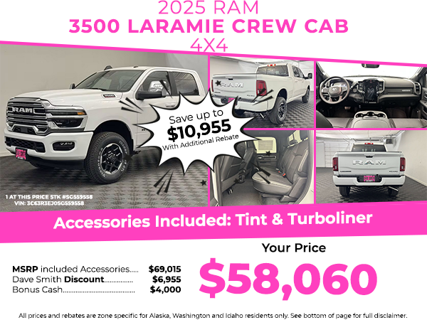 Bluetooth technology is built into this model, keeping your hands on the steering wheel and your focus on the road. The state of the art park assist system will guide you easily into any spot. The vehicle offers Automatic Climate Control for personalized comfort. The leather seats in this 2025 Ram 3500 are a must for buyers looking for comfort, durability, and style. This Ram 3500's Forward Collision Warning system alerts the driver to potential front-end collisions, enhancing safety. The installed navigation system will keep you on the right path. Keep your hands warm all winter with a heated steering wheel in this 2025 Ram 3500 . This unit offers Apple CarPlay for seamless connectivity. See what's behind you with the back up camera on it. This vehicle comes equipped with Android Auto for seamless smartphone integration on the road. It has automated speed control that adjusts to maintain a safe following distance, enhancing highway driving convenience.