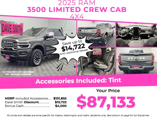 This 1 ton pickup's Forward Collision Warning system alerts the driver to potential front-end collisions, enhancing safety. This vehicle has automated speed control that adjusts to maintain a safe following distance, enhancing highway driving convenience. See what's behind you with the back up camera on it. Bluetooth technology is built into this 2025 Ram 3500 , keeping your hands on the steering wheel and your focus on the road. The leather seats in this 2025 Ram 3500 are a must for buyers looking for comfort, durability, and style. Apple CarPlay: Seamless smartphone integration for this 2025 Ram 3500 - stay connected and entertained on the go! This unit offers Android Auto for seamless smartphone integration. Keep your hands warm all winter with a heated steering wheel in this vehicle . You'll never again be lost in a crowded city or a country region with the navigation system on it. Set the temperature exactly where you are most comfortable in this 2025 Ram 3500 . The fan speed and temperature will automatically adjust to maintain your preferred zone climate.