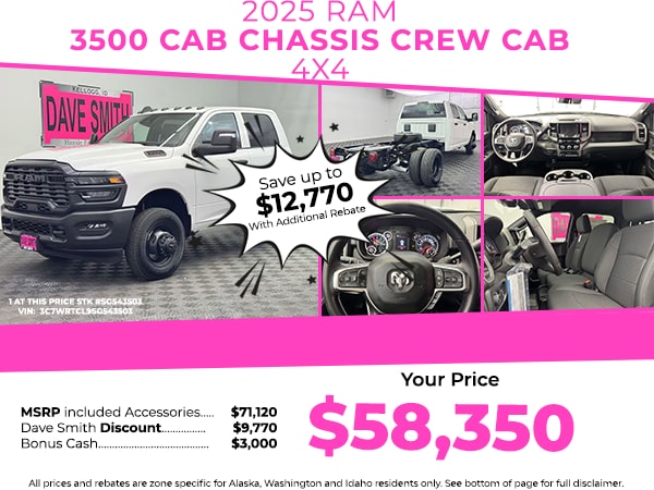 Cold Weather Group: Engine Block Heater; MOPAR Winter Front Grille Cover. Tradesman Level 1 Equipment Group: Rear Window Defroster; Black Power Heated Fold Telescope Mirrors; Exterior Mirrors with Supplemental Signals; Exterior Mirrors Courtesy Lamps; Manual Folding Exterior Mirrors; Trailer Light Check; Exterior Mirrors with Heating Element; Trailer Brake Control; Mirror Running Lights; Manuarl Telescoping Mirrors; Power Adjust Mirrors; Black Exterior Mirrors; Power-Adjustable Convex Aux Mirrors. Quick Order Package 25A Tradesman. Dual Rear Wheels: LT235/80R17E BSW All-Season Tires; 6000# Front Axle with Hub Extension; 17 X 6.0 Black Painted Steel Wheels; 11.50 Dual Wheels Rear Axle; Black Wheel Center Hub. ParkView Rear Back-Up Camera. Full Size Spare Tire. Cloth 40/20/40 Bench Seat. **Equipment listed is based on original vehicle build and subject to change. Please confirm the accuracy of the included equipment by calling the dealer prior to purchase.**
