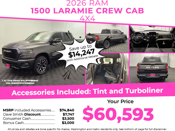 It has auto-adjust speed for safe following. This model's Forward Collision Warning feature alerts drivers to potential front-end collisions. The vehicle offers Android Auto for seamless smartphone integration. It is pure luxury with a heated steering wheel. This 2026 Ram 1500 offers Apple CarPlay for seamless connectivity. Start this vehicle from inside with remote start. The state of the art park assist system will guide you easily into any spot. See what's behind you with the back up camera on this model. Bluetooth technology is built into this 1/2 ton pickup, keeping your hands on the steering wheel and your focus on the road. This Ram 1500 keeps you comfortable with Auto Climate. The leather seats in this Ram 1500 are a must for buyers looking for comfort, durability, and style. The installed navigation system will keep you on the right path. This 2026 Ram 1500 has a 6 Cyl, 3.0L high output engine.