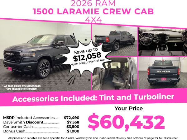 The Ram 1500 comes equipped with Android Auto for seamless smartphone integration on the road. The state of the art park assist system will guide you easily into any spot. The installed navigation system will keep you on the right path. This Ram 1500 has auto-adjust speed for safe following. See what's behind you with the back up camera on the Ram 1500. The leather seats in this Ram 1500 are a must for buyers looking for comfort, durability, and style. Bluetooth technology is built into the vehicle, keeping your hands on the steering wheel and your focus on the road. Apple CarPlay: Seamless smartphone integration for the Ram 1500 - stay connected and entertained on the go! Start this 2026 Ram 1500 from inside with remote start. The vehicle is pure luxury with a heated steering wheel. The Ram 1500 keeps you comfortable with Auto Climate. It's Forward Collision Warning system alerts the driver to potential front-end collisions, enhancing safety.