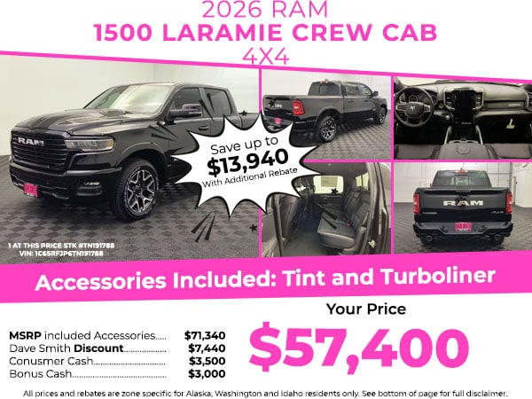 Apple CarPlay: Seamless smartphone integration for this 1/2 ton pickup - stay connected and entertained on the go! This 2026 Ram 1500 offers Android Auto for seamless smartphone integration. It features a hands-free Bluetooth phone system. Keep your hands warm all winter with a heated steering wheel in the Ram 1500 . The leather seats in this unit are a must for buyers looking for comfort, durability, and style. Never get into a cold vehicle again with the remote start feature on the Ram 1500. Protect the vehicle from unwanted accidents with a cutting edge backup camera system. The state of the art park assist system will guide you easily into any spot. You'll never again be lost in a crowded city or a country region with the navigation system on this Ram 1500. This unit's Forward Collision Warning feature alerts drivers to potential front-end collisions. The vehicle has automated speed control that adjusts to maintain a safe following distance, enhancing highway driving convenience.