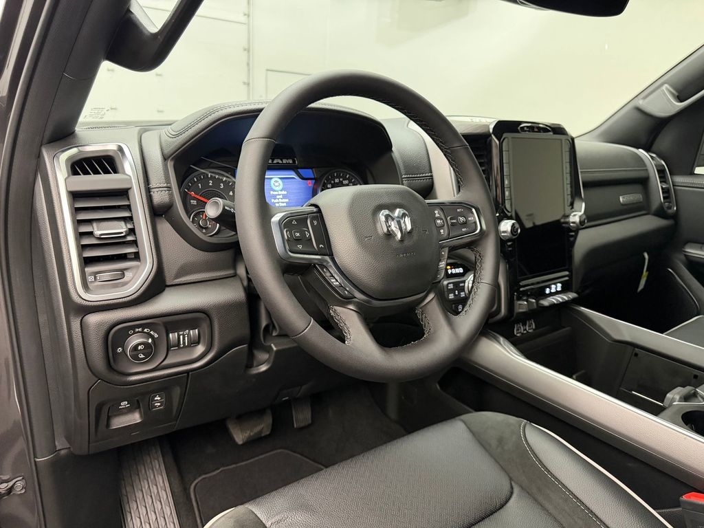 The vehicle offers Apple CarPlay for seamless connectivity. This 2026 Ram 1500 comes equipped with Android Auto for seamless smartphone integration on the road. This model has auto-adjust speed for safe following. It keeps you comfortable with Auto Climate. The vehicle's Forward Collision Warning feature alerts drivers to potential front-end collisions. Start the vehicle from inside with remote start. See what's behind you with the back up camera on it. The Ram 1500 is pure luxury with a heated steering wheel. The leather seats in it are a must for buyers looking for comfort, durability, and style. You'll never again be lost in a crowded city or a country region with the navigation system on this unit. The state of the art park assist system will guide you easily into any spot. It features a hands-free Bluetooth phone system. This model has a 6 Cyl, 3.0L high output engine. Maintaining a stable interior temperature in the Ram 1500 is easy with the climate control system.
