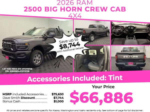 New 2026 Ram2500 BIG HORN CREW CAB 4X4 6'4 BOX