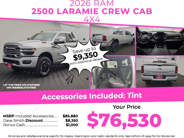 Quick Order Package 24H Laramie. MOPAR 20K Direct Mount 5th Wheel Hitch. 5th Wheel/gooseneck Towing Prep Group. Center Stop Lamp with Cargo View Camera. Silver Zynith. **Equipment listed is based on original vehicle build and subject to change. Please confirm the accuracy of the included equipment by calling the dealer prior to purchase.**