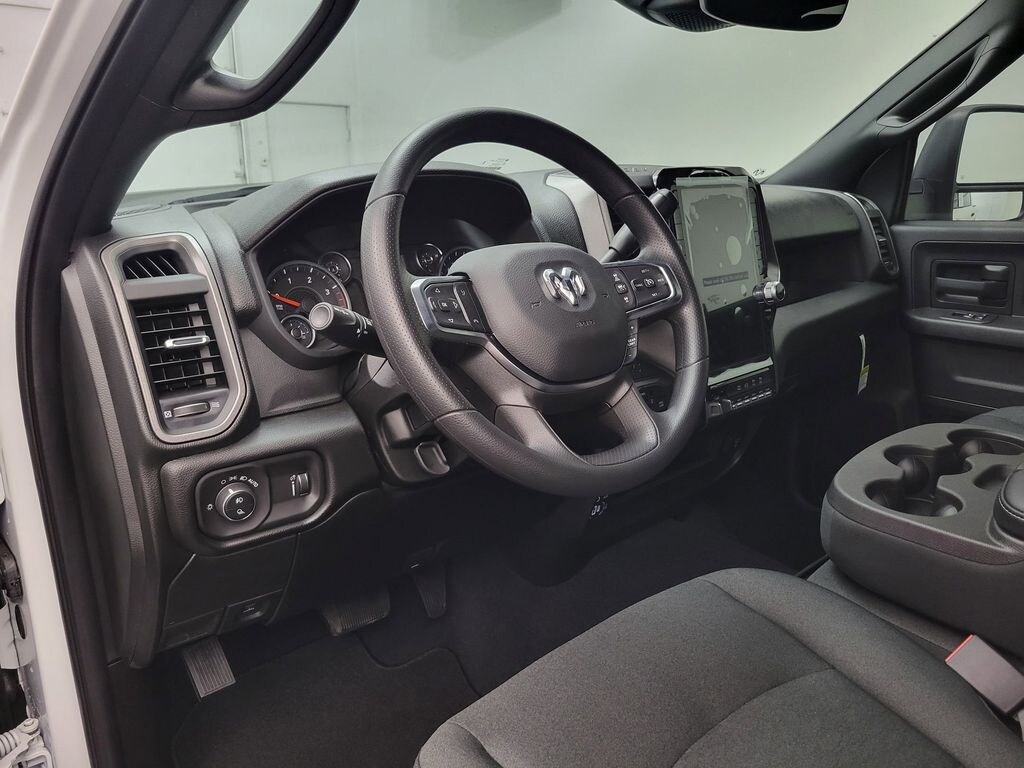 Cold Weather Group: Engine Block Heater; MOPAR Winter Front Grille Cover. Tradesman Level 1 Equipment Group: Google Android Auto; SiriusXM Radio Service; For Details. Visit DriveUconnect.com; For More Info. Call 800-643-2112; Integrated Voice Command with Bluetooth; Emergency Vehicle Alert System (EVAS); Manual Folding Exterior Mirrors; 12 Touchscreen Display; Auto Power-Folding Mirrors; 4 Way Front Headrests; Front Armrest with Cupholders; Anti-Spin Differential Rear Axle; Remote USB Port - Charge Only; Manual Adjust 4-Way Front Passenger Seat; Mirror Running Lights; Exterior 115V AC Outlet; Alexa Built-In; Apple CarPlay; Power-Adjustable Convex Aux Mirrors; Forward and Reverse Utility Lights; Cloth 40/20/40 Bench Seat; Disassociated Touchscreen Display; Storage Tray; 115-Volt Auxiliary Front Power Outlet; Rear View Auto Dim Mirror; 40/20/40 Split Bench Seat; Rear Power Sliding Window; Connectivity - US/Canada; Rear Folding Seat; Tinted Acoustic Windshield Glass; GPS Navigation; 4G LTE Wi-Fi Hot Spot; GPS Antenna Input; Exterior Mirrors with Heating Element; MOPAR Black Tubular Side Steps; SiriusXM with 360L; Global Telematics Box Module; Connected Travel and Traffic Services; Black Exterior Mirrors; 2 Way Rear Headrest Seat; Carpet Floor Covering; Off-Road Info Pages; Selectable Tire Fill Alert; Trailer Tow Pages; 400W Inverter; HD Radio; Power Heated Folding Telescope Mirrors; Uconnect 5 Navigation with 12.0 Display Radio; Exterior Mirrors with Supplemental Signals; Exterior Mirrors Courtesy Lamps; Air Conditioning ATC with Dual Zone Control; Manual Adjust 4-Way Driver Seat; Manuarl Telescoping Mirrors; Power Adjust Mirrors; Power Telescoping Mirrors; Front and Rear Floor Mats; ParkSense Front/rear Park Assist System. Convenience Group. Bed Convenience Group: MOPAR Spray in Bedliner; LED Bed Lighting. Quick Order Package 24A Tradesman. Commercial Features Package: 400W Inverter; 115-Volt Auxiliary Front Power Outlet; Exterior 115V AC Outlet; ParkSense Front/rear Park Assist System. 5th Wheel/gooseneck Towing Prep Group. MOPAR Black Tubular Side Steps. Anti-Spin Differential Rear Axle. Cloth 40/20/40 Bench Seat. Instrument Panel Mounted Auxiliary Switches. **Equipment listed is based on original vehicle build and subject to change. Please confirm the accuracy of the included equipment by calling the dealer prior to purchase.**