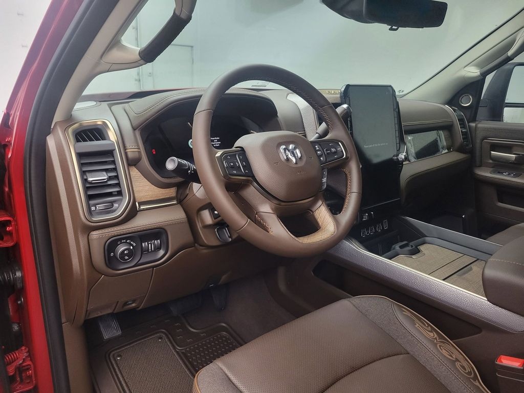 Cold Weather Group: Engine Block Heater; MOPAR Winter Front Grille Cover. Quick Order Package 24K Longhorn: Luxury Front and Rear Floor Mats; Longhorn Instrument Cluster Theme 3; Premium Door Trim Panel; Premium Filigree Leather Seats; I/P Aluminum Litho Bezels with Real Wood #1; Longhorn Badge. Longhorn Level 1 Equipment Group: Active Lane Management System; MOPAR Spray in Bedliner; Center Stop Lamp with Cargo View Camera; Surround View Camera System; Drowsy Driver Detection; LED Bed Lighting; Power Deployable Running Boards; Traffic Sign Recognition; Trailer Tire Pressure Monitoring System; Trailer Reverse Guidance; Digital Rearview Mirror; Adaptive Steering System. Dual Rear Wheels: Clearance Lamps; 17 Steel Spare Wheel; Box and Rear Fender Clearance Lamps; Vendor Painted Cargo Box; 6. 000 lbs Front Axle with Hub Extension; Pickup Box; 17 X 6.0 Polished Aluminum Wheels; Nexen Brand Tires; 14. 000 lbs GVWR; LT235/80R17E BSW All Season Tires; Center Hub; Dual Rear Wheel Fender Flare Tracking; Vendor Painted Cargo Box Tracking. MOPAR 30K Direct Mount 5th Wheel Hitch. Power Sunroof. LT235/80R17E Off Road Tires. Molten Red Pearlcoat. DOT Certified Roadside Safety Kit. Clearance Lamps. 5th Wheel/gooseneck Towing Prep Group. **Equipment listed is based on original vehicle build and subject to change. Please confirm the accuracy of the included equipment by calling the dealer prior to purchase.**