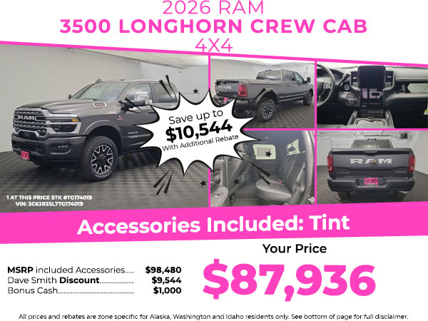 This vehicle offers Android Auto for seamless smartphone integration. The vehicle features a hands-free Bluetooth phone system. The leather seats are soft and supportive on it. Never get into a cold vehicle again with the remote start feature on the Ram 3500. Keep your hands warm all winter with a heated steering wheel in this 2026 Ram 3500 . You'll never again be lost in a crowded city or a country region with the navigation system on the Ram 3500. See what's behind you with the back up camera on this 2026 Ram 3500 . The Ram 3500 has auto-adjust speed for safe following. Apple CarPlay: Seamless smartphone integration for this unit - stay connected and entertained on the go! This 2026 Ram 3500 's Forward Collision Warning feature alerts drivers to potential front-end collisions. Maintaining a stable interior temperature in the Ram 3500 is easy with the climate control system.