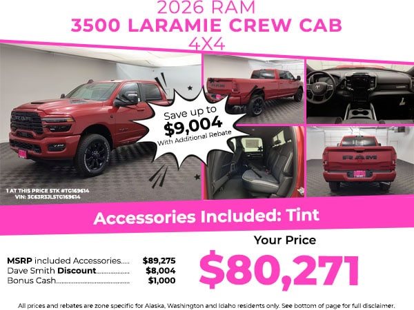 Protect it from unwanted accidents with a cutting edge backup camera system. The vehicle's Forward Collision Warning system alerts the driver to potential front-end collisions, enhancing safety. You'll never again be lost in a crowded city or a country region with the navigation system on this unit. Keep your hands warm all winter with a heated steering wheel in this vehicle . The leather seats in the Ram 3500 are a must for buyers looking for comfort, durability, and style. Start this model from inside with remote start. Bluetooth technology is built into this unit, keeping your hands on the steering wheel and your focus on the road. The vehicle offers Android Auto for seamless smartphone integration. Apple CarPlay: Seamless smartphone integration for the Ram 3500 - stay connected and entertained on the go! It has auto-adjust speed for safe following. This 2026 Ram 3500 excites both driver and bystanders with a polished red exterior with racy lines.