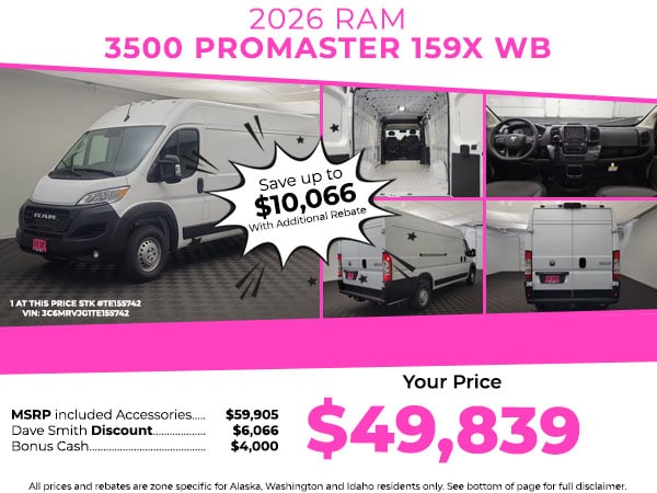 New 2026 RamProMaster PROMASTER 3500 TRADESMAN CARGO VAN HIGH ROOF 159'