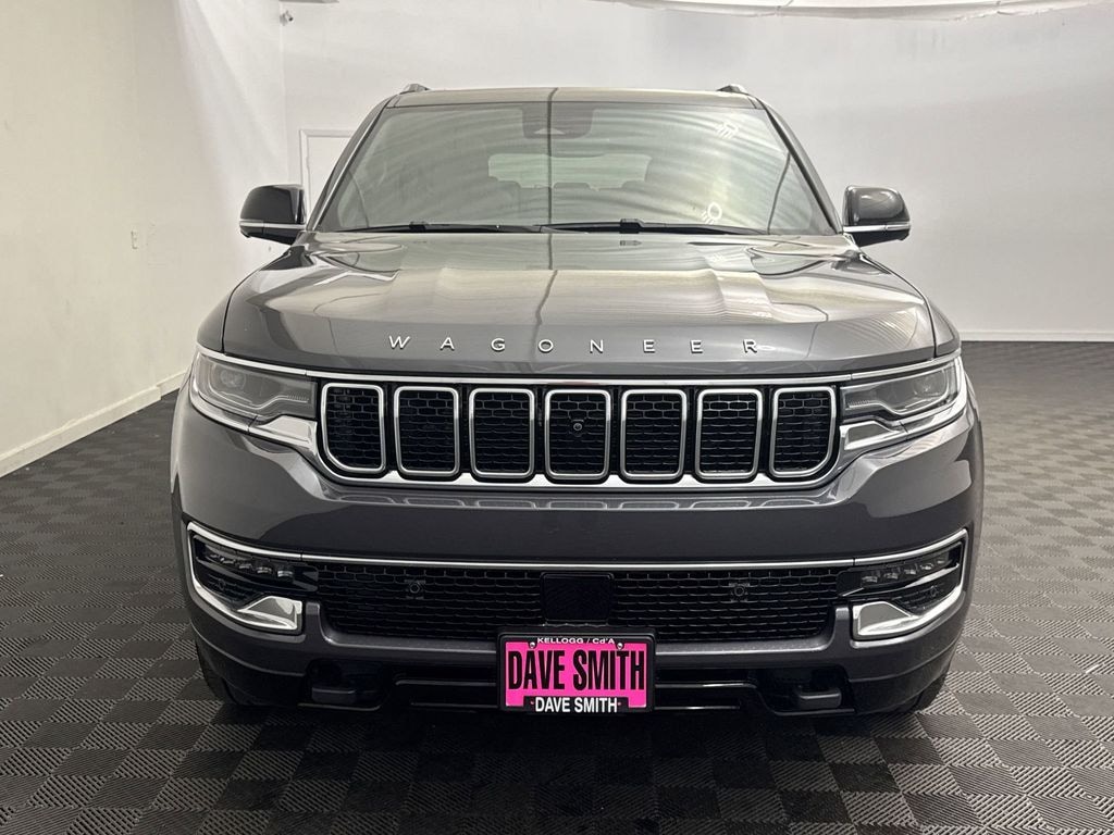 The vehicle has automated speed control that adjusts to maintain a safe following distance, enhancing highway driving convenience. This unit is pure luxury with a heated steering wheel. You'll never again be lost in a crowded city or a country region with the navigation system on the vehicle. This 1/2 ton suv offers Apple CarPlay for seamless connectivity. Start this vehicle from inside with remote start. An off-road package is equipped on this vehicle. It features a hands-free Bluetooth phone system. This 1/2 ton suv's Forward Collision Warning feature alerts drivers to potential front-end collisions. Protect it from unwanted accidents with a cutting edge backup camera system. The Jeep Wagoneer offers Android Auto for seamless smartphone integration. This vehicle is a certified CARFAX 1-owner. Our dealership has already run the CARFAX report and it is clean. A clean CARFAX is a great asset for resale value in the future. The leather seats in it are a must for buyers looking for comfort, durability, and style.