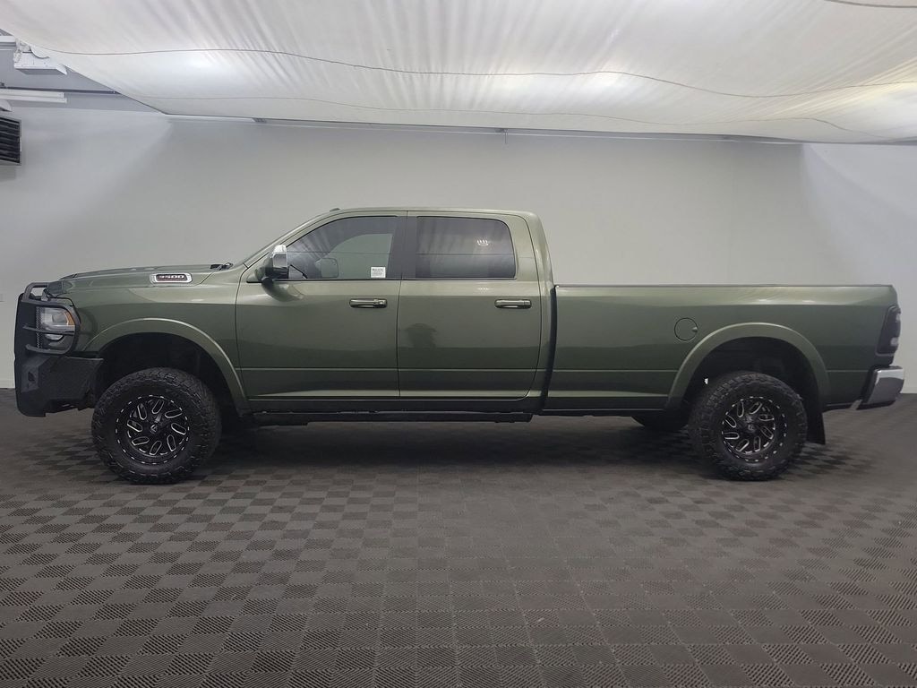 Quick Order Package 21H Laramie. Laramie Level B Equipment Group: Mirror-Mounted Aux Reverse Lamps; Rain Sensitive Windshield Wipers; Power Adjustable Pedals with Memory; Power Chrome Tow Mirrors with Convex Spotter and Memory; Ventilated Front Seats; Remote Tailgate Release; 17 Speaker Harman Kardon Premium Sound; Auto High Beam Headlamp Control; Exterior Mirrors with Memory; Heated Second Row Seats; Foam Bottle Insert (door Trim Panel); 2nd Row in Floor Storage Bins; Radio/driver Seat/mirrors/pedals Memory; Power Adjustable Convex Aux Mirrors. Sport Appearance Package: Body Color Grille Surround; Black Interior Accents; Sport Decal; Body Color Door Handles. Bed Utility Group: MOPAR Spray in Bedliner; MOPAR Deployable Bed Step; LED Bed Lighting. Heavy Duty Snow Plow Prep Group: Transfer Case Skid Plate Shield. Uconnect Radio 12.0 with Navigation. Power Sunroof. Power Deployable Running Boards. MOPAR Spray in Bedliner. 5th Wheel/gooseneck Towing Prep Group. 50 Gallon Fuel Tank. LED Bed Lighting. MOPAR Front and Rear Rubber Floor Mats. Olive Green Pearlcoat. **Equipment listed is based on original vehicle build and subject to change. Please confirm the accuracy of the included equipment by calling the dealer prior to purchase.**